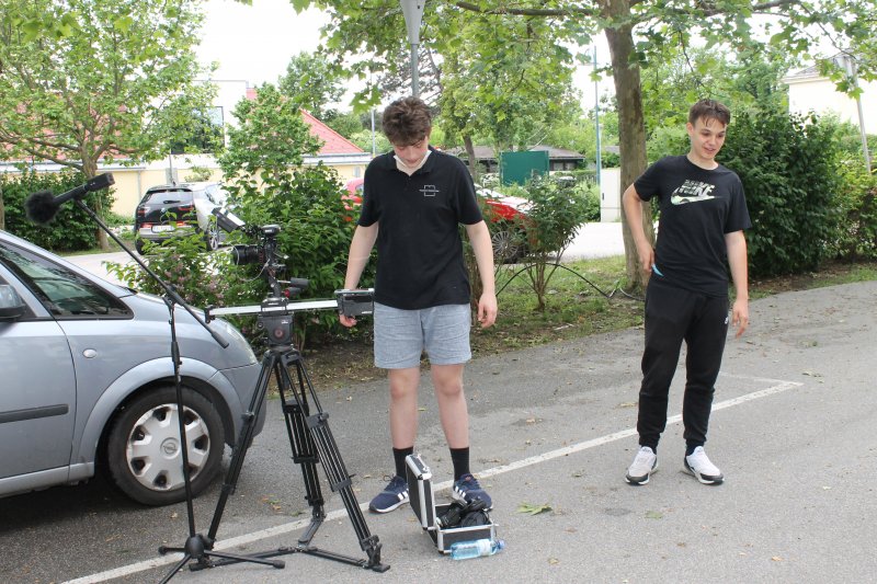 Die Dreharbeiten fanden an einem Wochenende im Schulgebäude und am Parkplatz vor der Schule statt. Michael Jung stellte sein Equipment und sein Know-how zur Verfügung und übernahm mit Unterstützung von Ralph Forthuber die Regiearbeit. Wir gaben uns große Mühe, die Besonderheiten dieser Jahrzehnte so originalgetreu wie möglich nachzustellen. Auf diese Weise wurde unser Drehbuch zu einem Film.